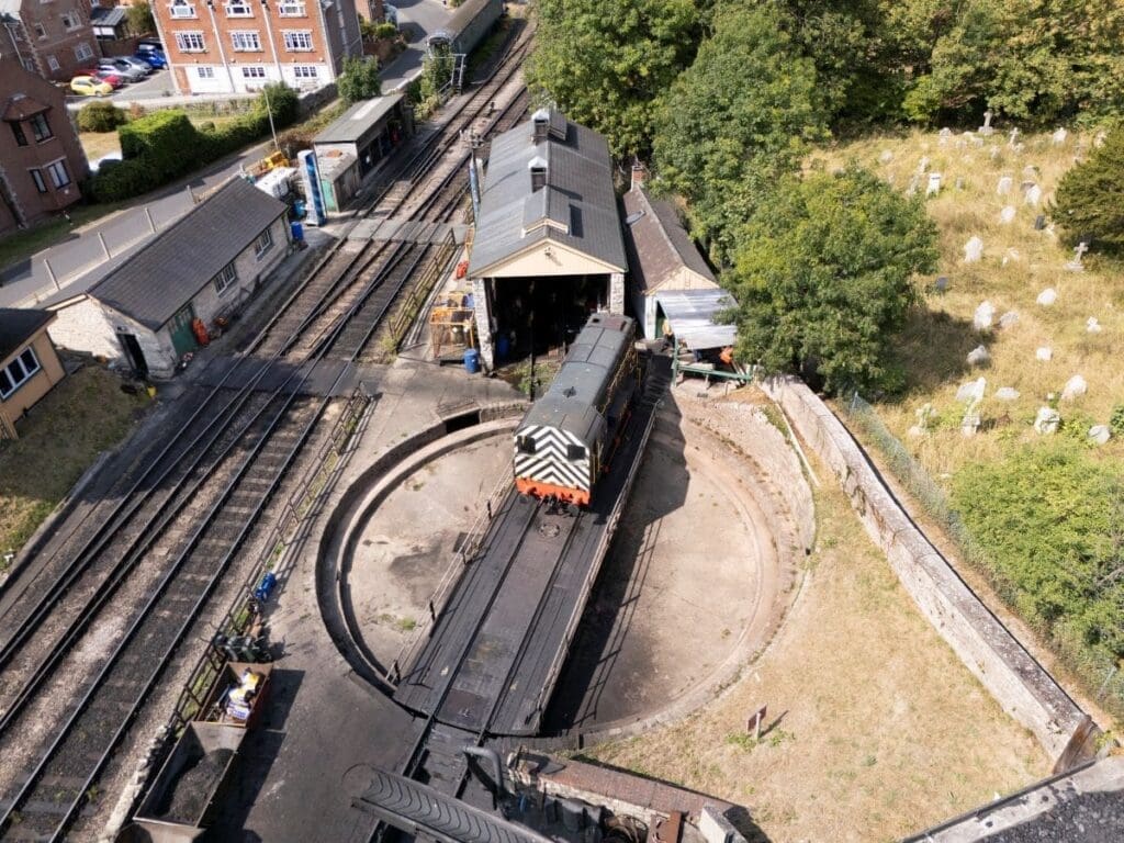 The steam locomotive engine shed was built in 1885 and continues to be used today. The Locomotive turntable pit is also a rare example on the British railway system since so few survive and it is still in working order. Despite the loss of the original turntable, the pit was modified only slightly to accommodate the 1950s turntable that was installed in 2012 but is otherwise intact.